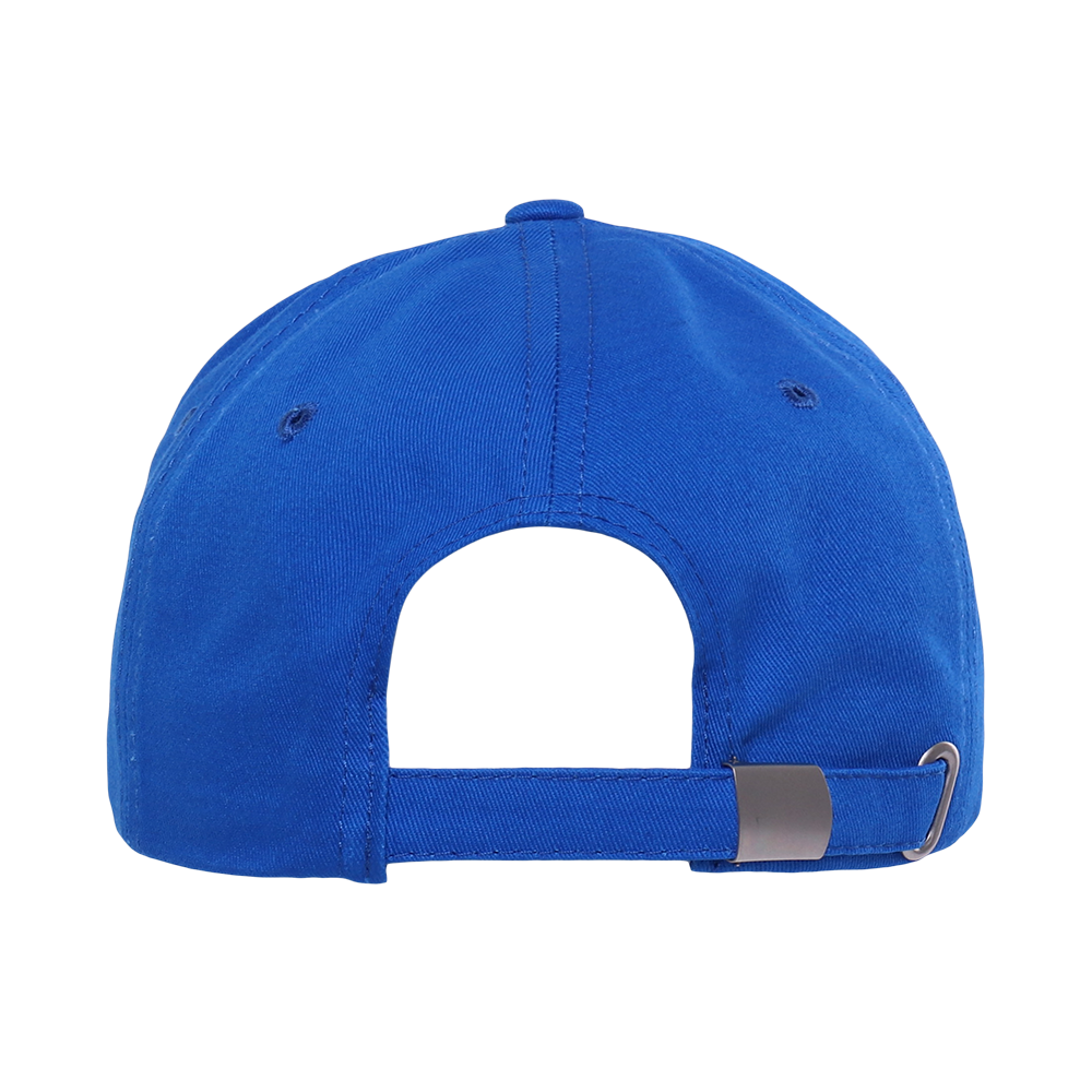 Бейсболка-шестиклинка с классическим изогнутым козырьком и застежкой на ленту с металлическим замком в тон основному цвету изделия.