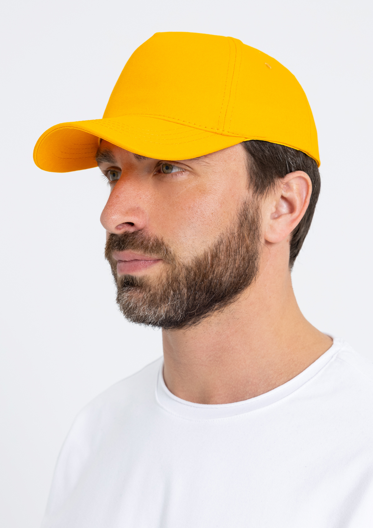Бейсболка-пятиклинка без лобового шва с изогнутым жестким козырьком. Посадка регулируется ремешком на металлической застежке.