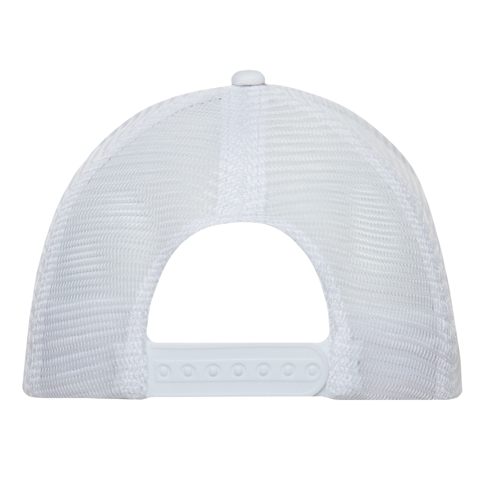 Бейсболка-пятиклинка с изогнутым жестким козырьком и прочной пластиковой регулируемой застежкой.