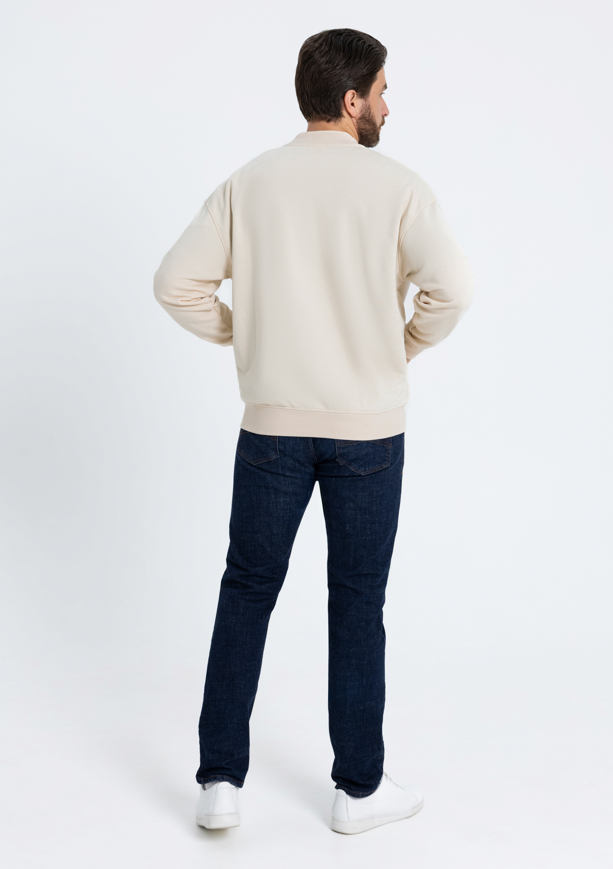Бомбер выполнен из плотного и приятного к телу материала – футер 3-х нитка (70% хлопок, 30% эластан). Дышащий материал хорошо отводит влагу, сохраняя комфортный микроклимат внутри изделия. Благодаря тройной нити полотно отличается высокой прочностью, что делает его и устойчивым к механическим повреждениям.