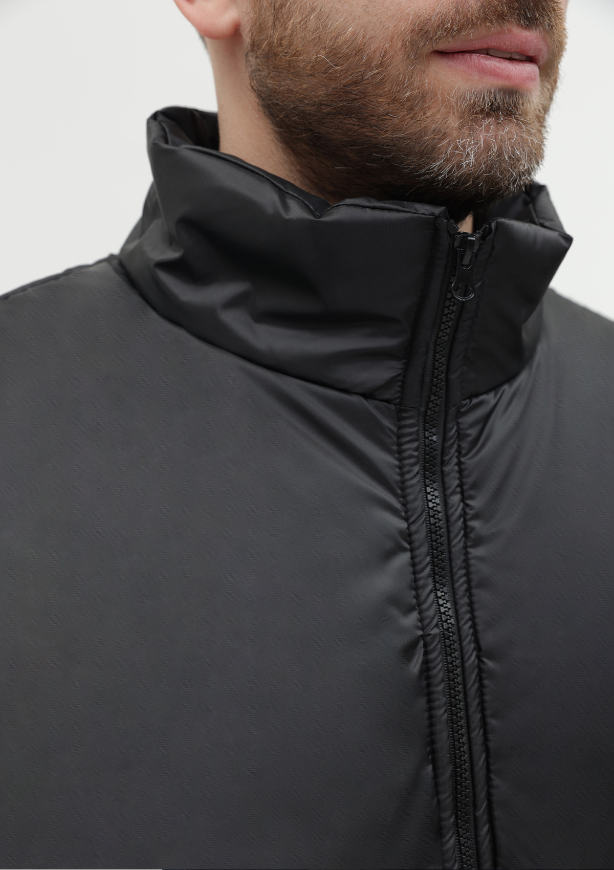 Универсальный жилет прямого силуэта с широкой горизонтальной стежкой, высоким воротником-стойкой, глубоким прорезным карманом и застежкой на молнию. Благодаря классическому лаконичному крою модель станет стильным дополнением как к мужскому, так и к женскому гардеробу.