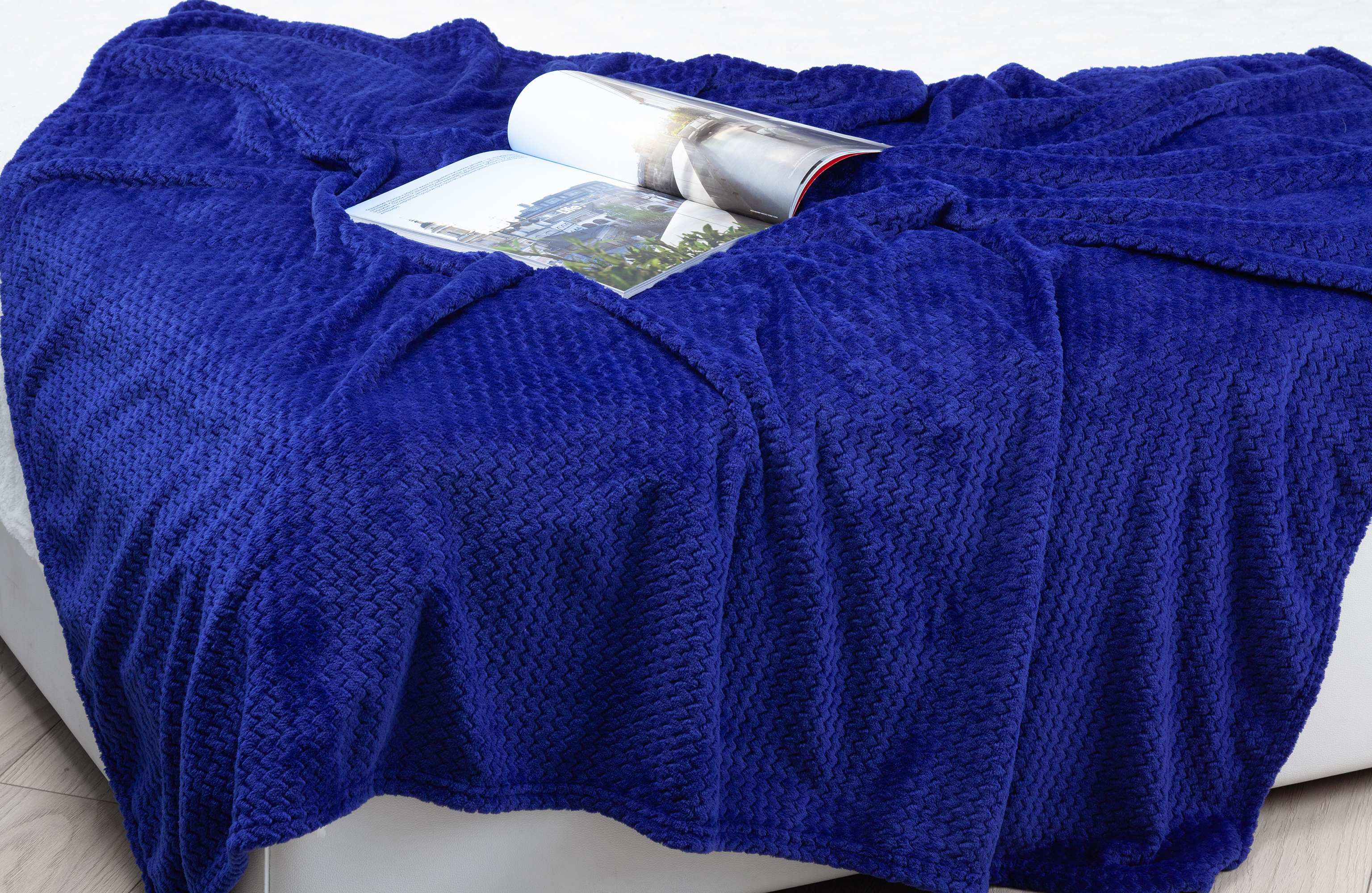 Уютный, необычайно теплый и мягкий плед из объемного флиса (плотность 260 гр/м2) с рисунком "Волна" в чехле 35 х 32 см из того же материала. Темно-синий (navy) цвет идеально подходит для корпоративного подарка. Плед удобно хранить, он легко складывается в чехол и занимает мало места.