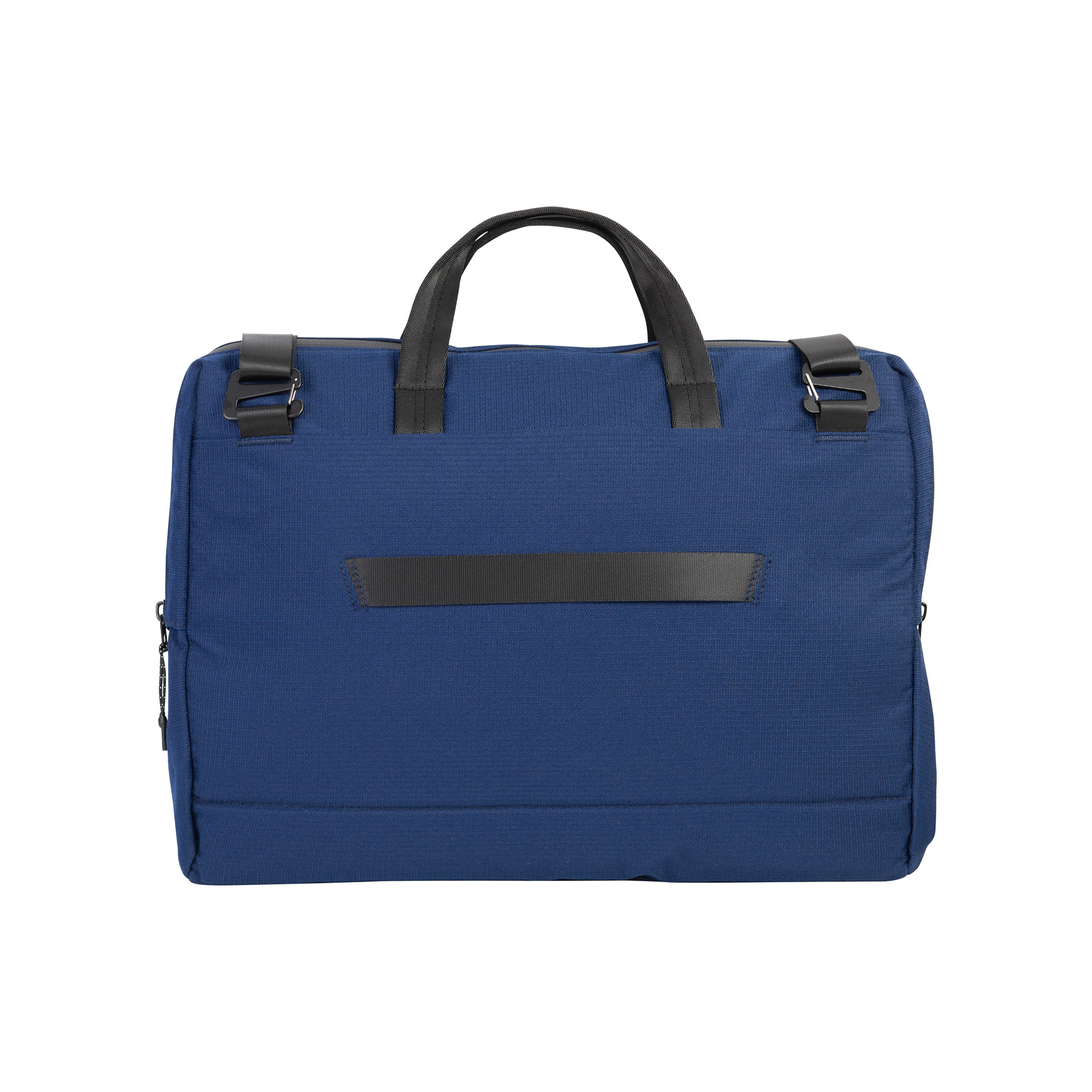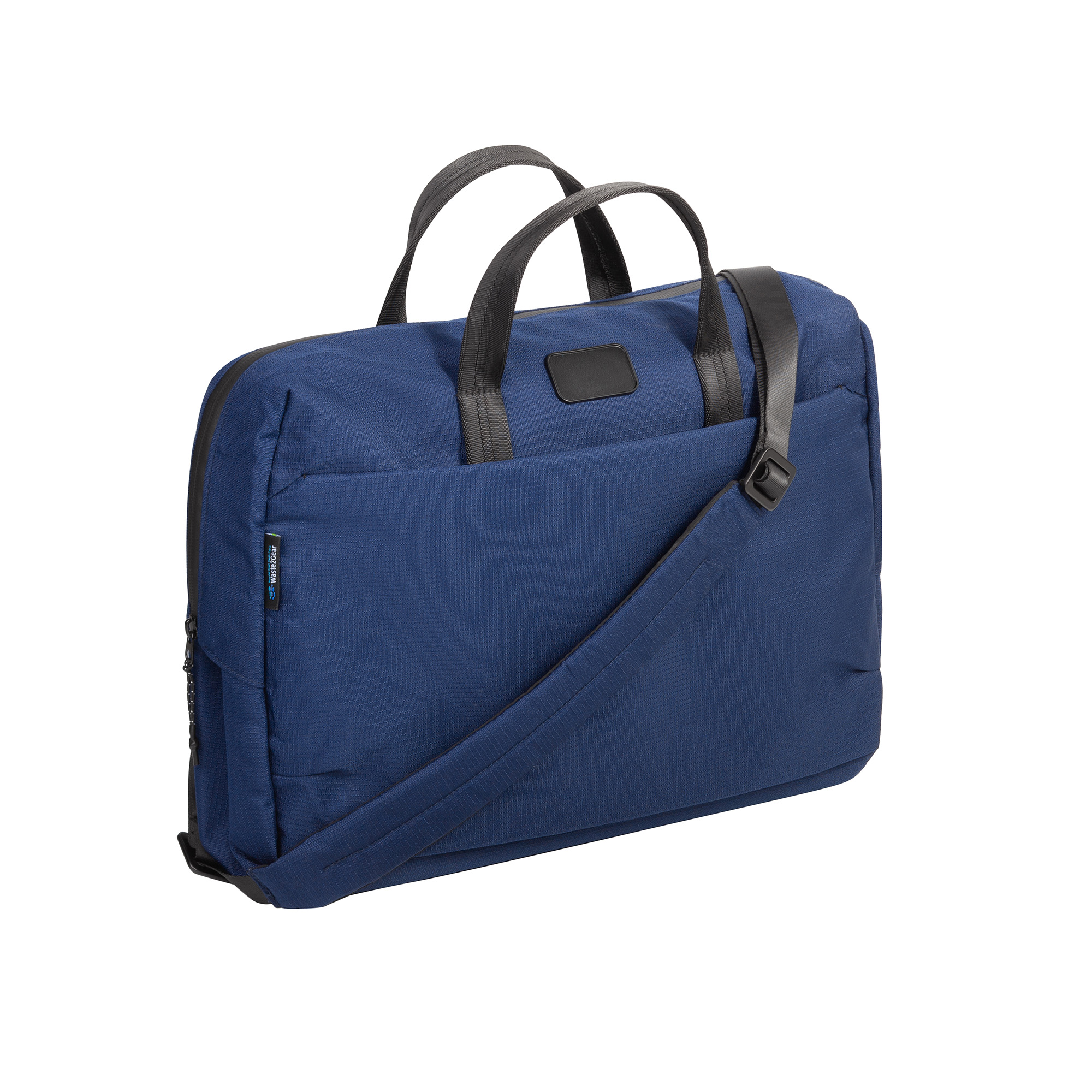 Сумка для ноутбука и документов "LANA". Передний карман с молнией для аксессуаров, карабин для ключей на стропе. Основное отделение с перегородкой для ноутбука до 15". Съемный плечевой ремень, крепление  на ручку чемодана. Внешний материал - ткань полученная из океанического пластика, переработано 6,5 бутылок 0,5 л. Рисунок с квадратной ячейкой отсылка к рыболовным сетям - один из крупных источников загрязнения. Реверсивная молния создает закрытый контур, защищает от попадания влаги. Подклад из однотонного серого материала с приятными тактильными свойствами.