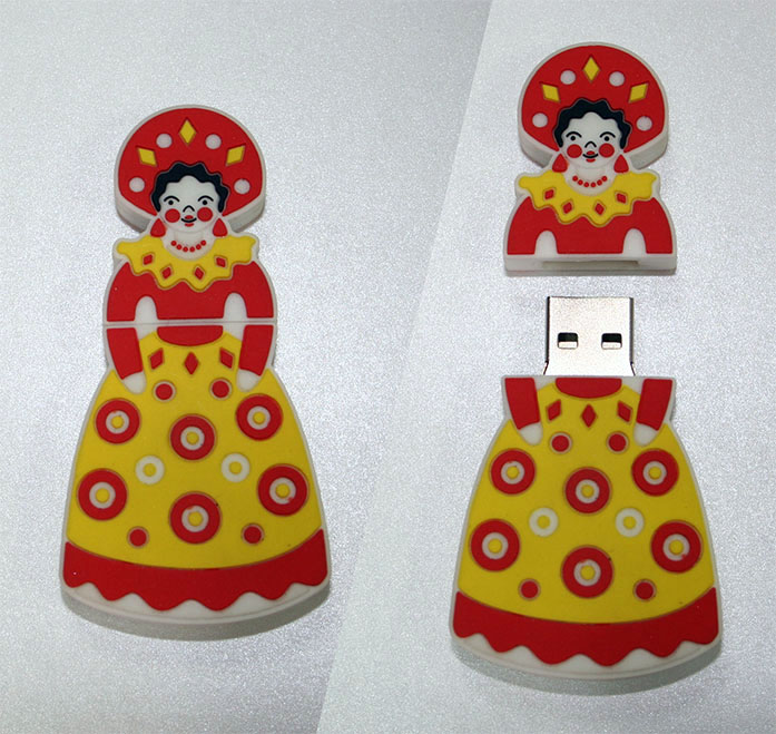 Флешки из поливинилхлорида: Средний вариант между пластиком и металлом. ПВХ-флешки могут быть любой формы и цвета, идеально подходят для нанесения изображений.