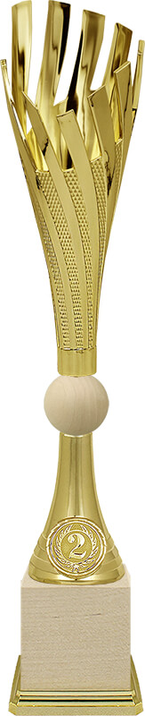 Серия кубков традиционной формы с элегантными чашами из металла и изысканными стемами из пластика. Подставка из натурального дерева на пластиковом основании.