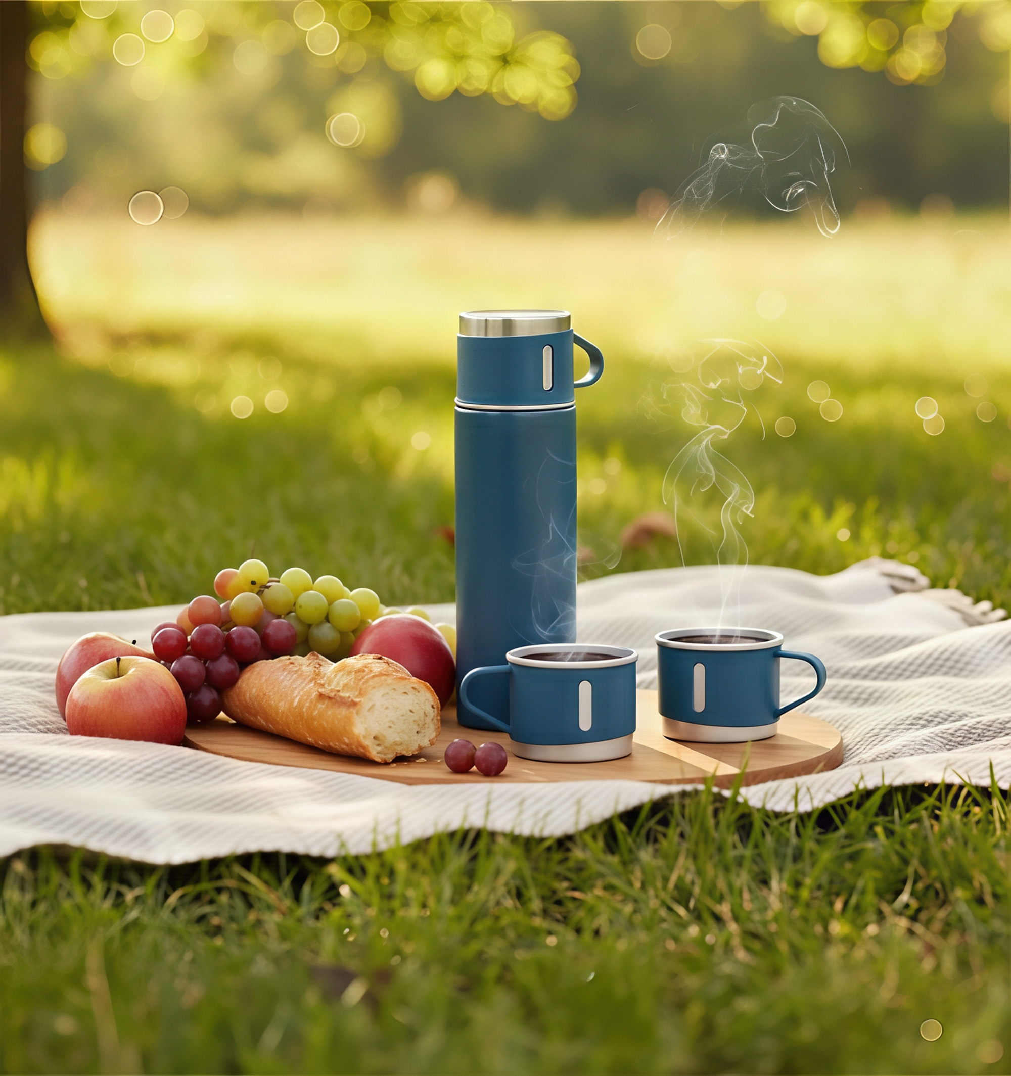 Термос удобно держать за ручку. Корпус в защитном порошковом покрытии (powder), рекомендуем гравировку газовым лазером и объемную уф-печать, см. фото. Колба из нержавеющей пищевой 304 стали. Клапан с кнопкой для удобного розлива и эффективного сохранения температуры напитка.