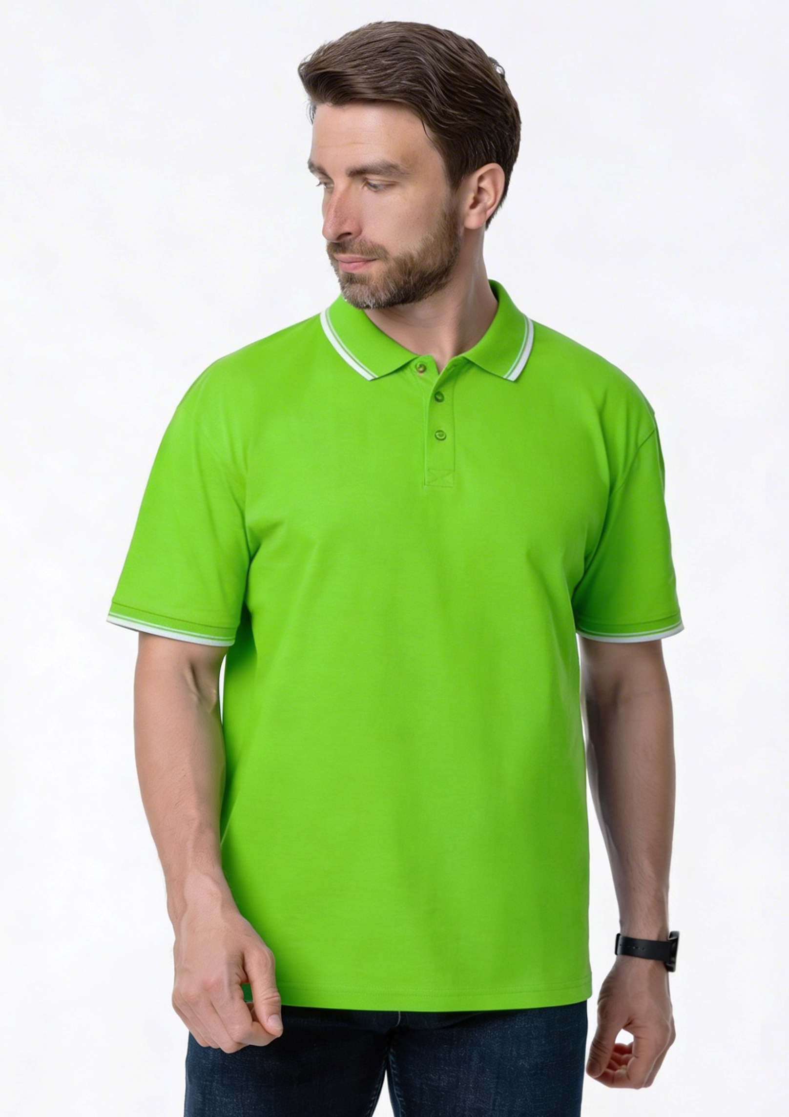 Поло выполнено из пластичного и приятного к телу трикотажного пике (80% хлопок 20% полиэстер). Ткань хорошо пропускает воздух и впитывает влагу. Благодаря добавлению синтетического волокна изделие практически не мнется.