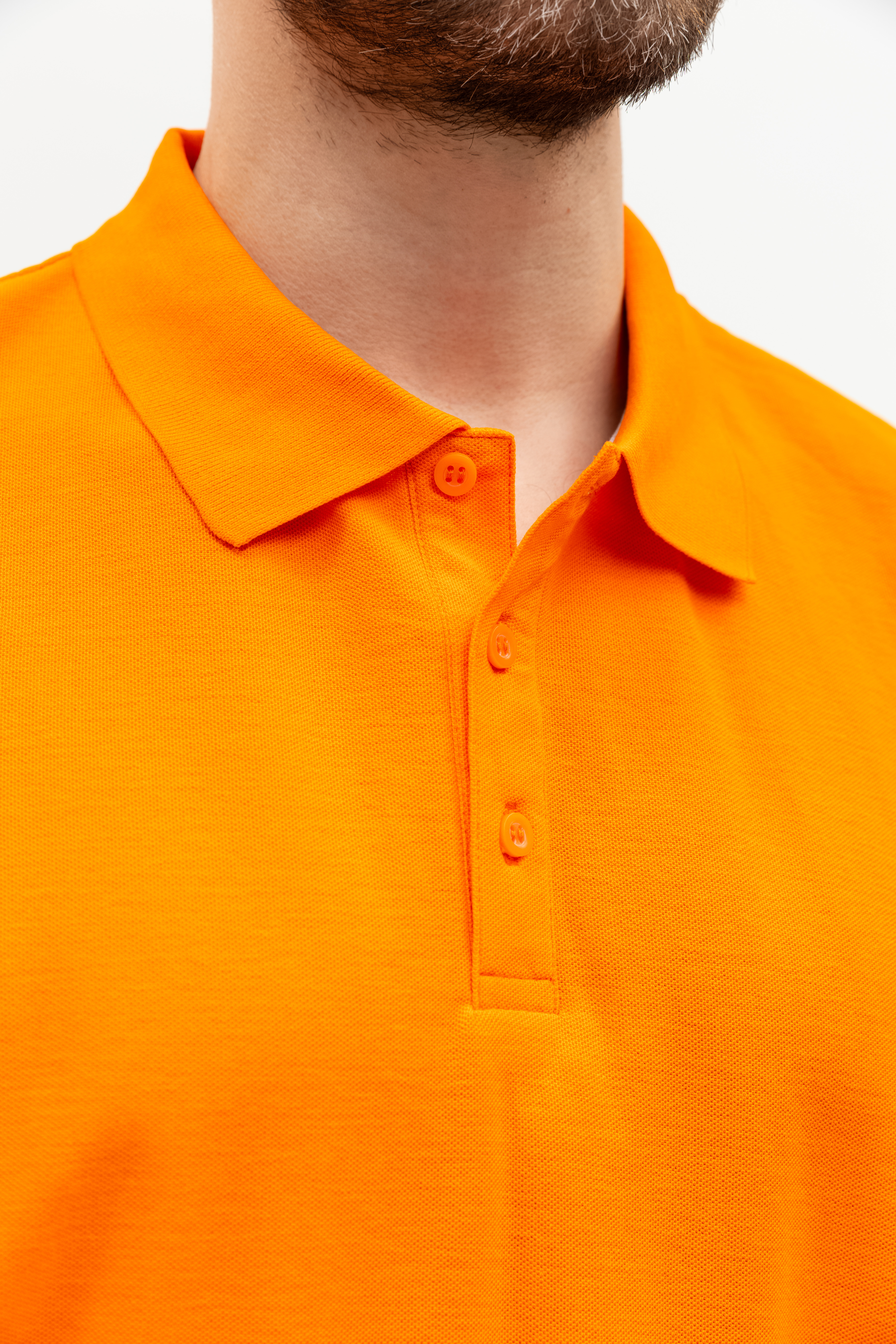 Поло выполнено из фактурной смесового ткани (65% хлопок, 35% полиэстер), благодаря чему изделие хорошо пропускает воздух и практически не мнется.