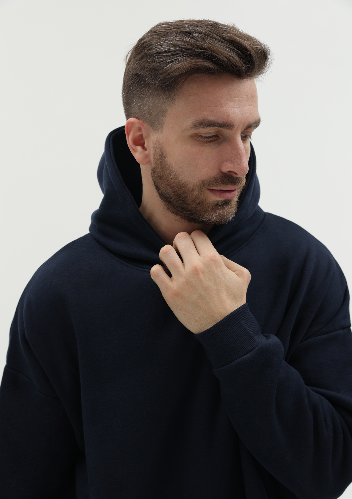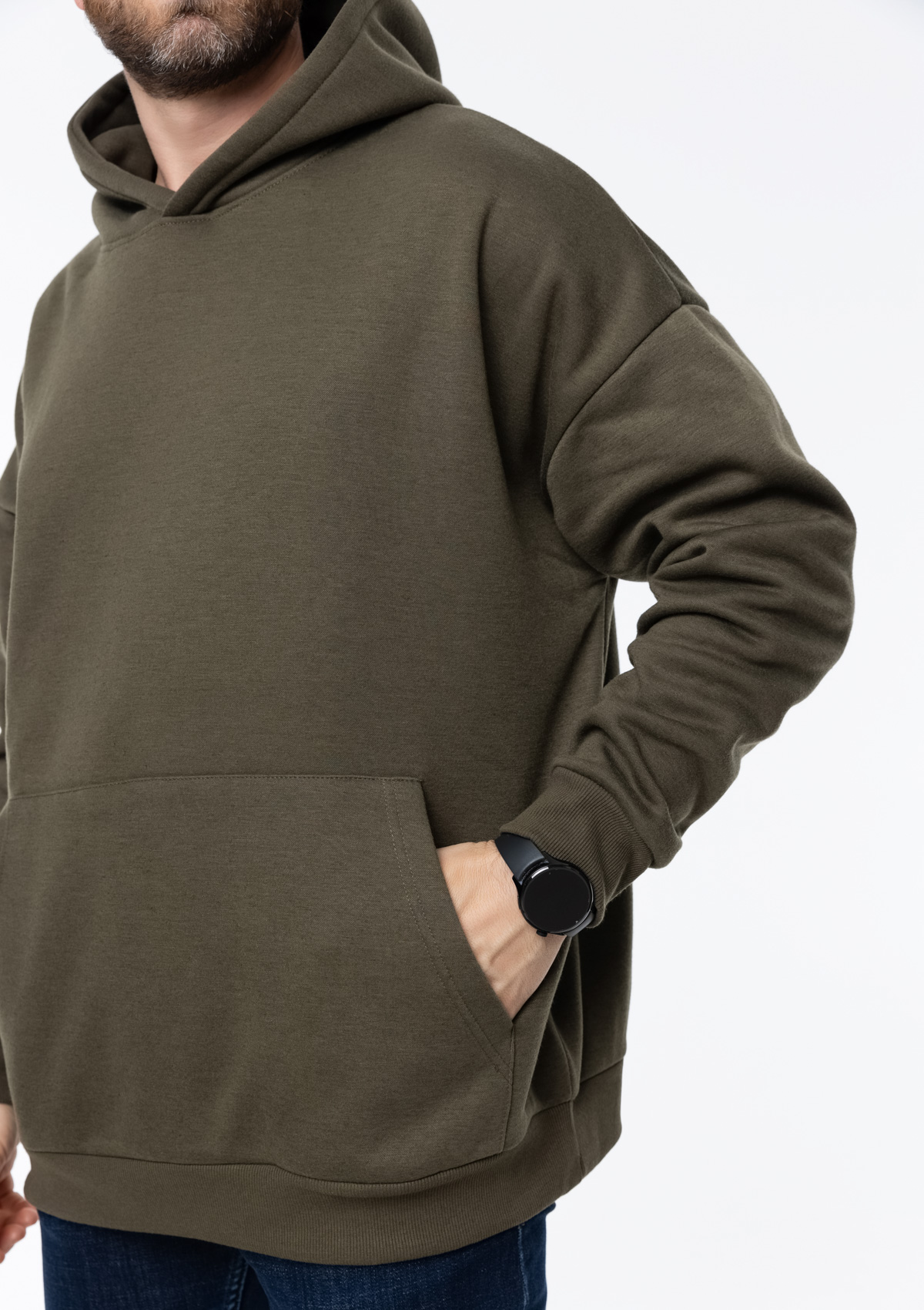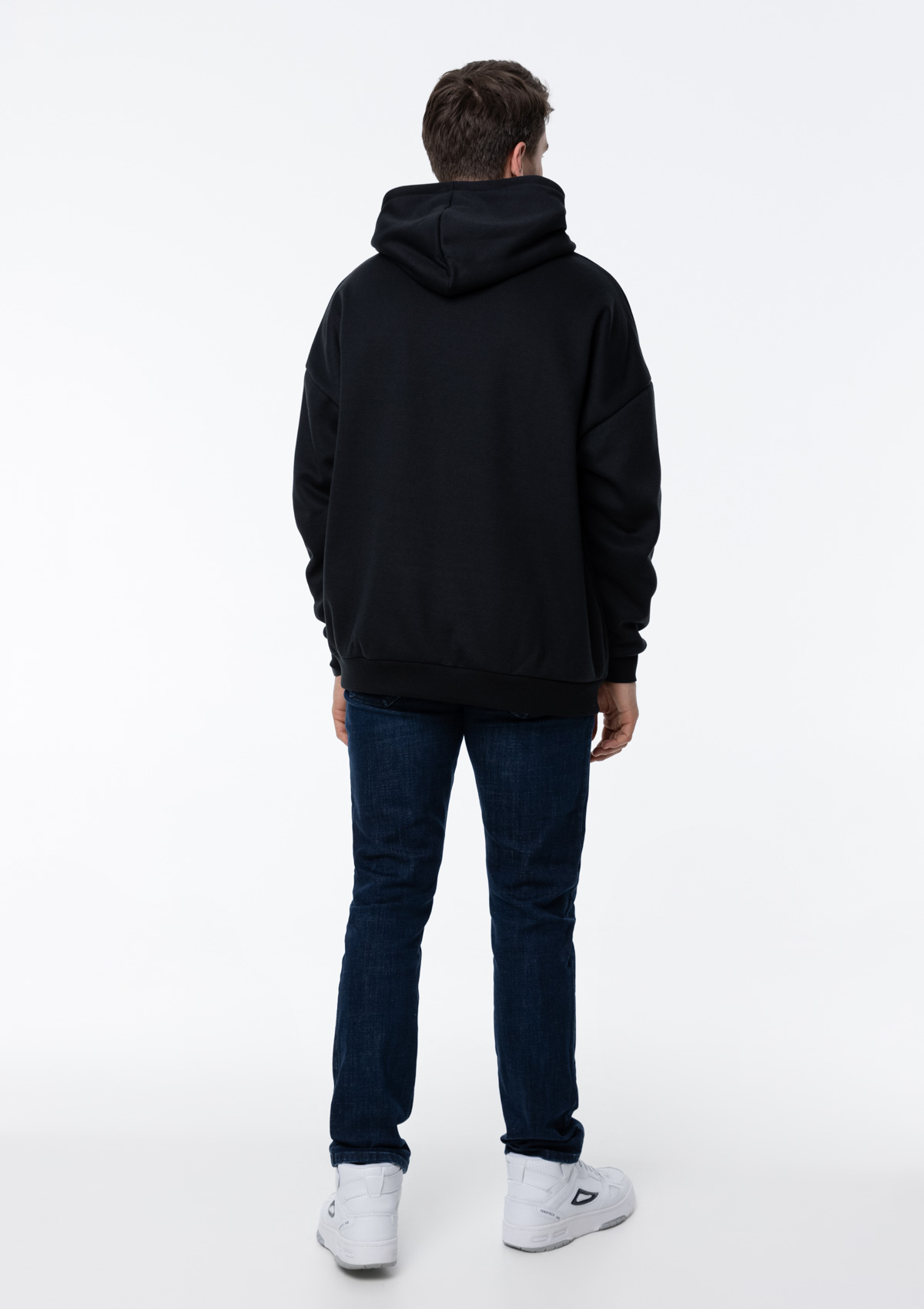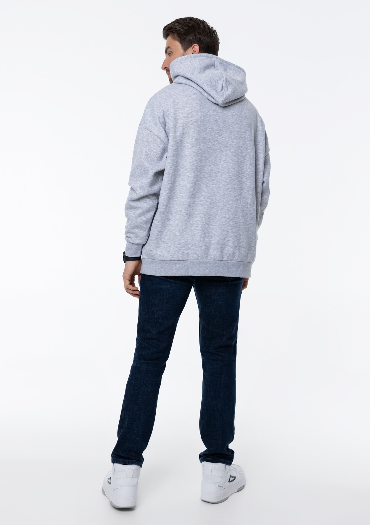 Размер мужского худи: XL/52. Параметры модели: рост 190 см.; обхват груди 108 см.; обхват талии 87 см.; обхват бедер 104 см.