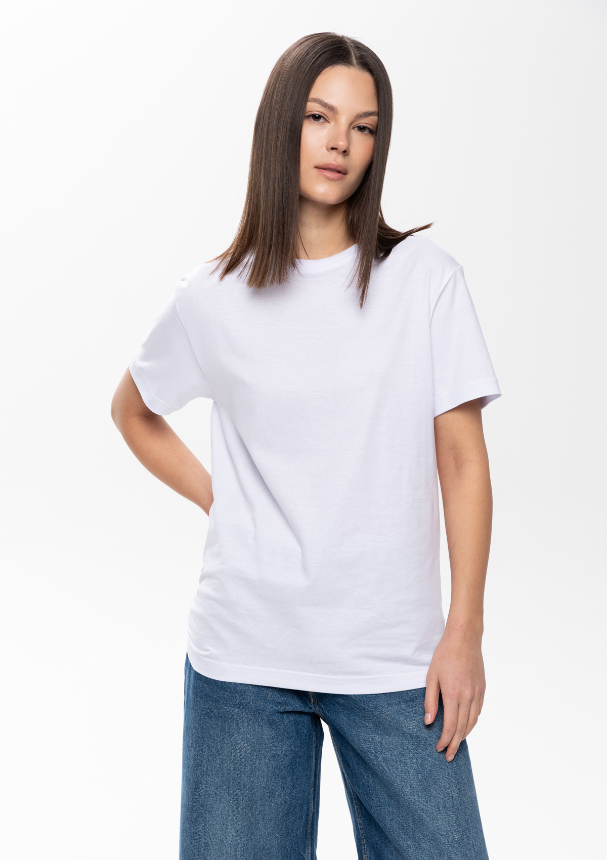 Классическая футболка прямого кроя с округлым воротом и втачным рукавом. Изделие не имеет бокового шва, что открывает новые возможности для реализации ваших креативных решений.