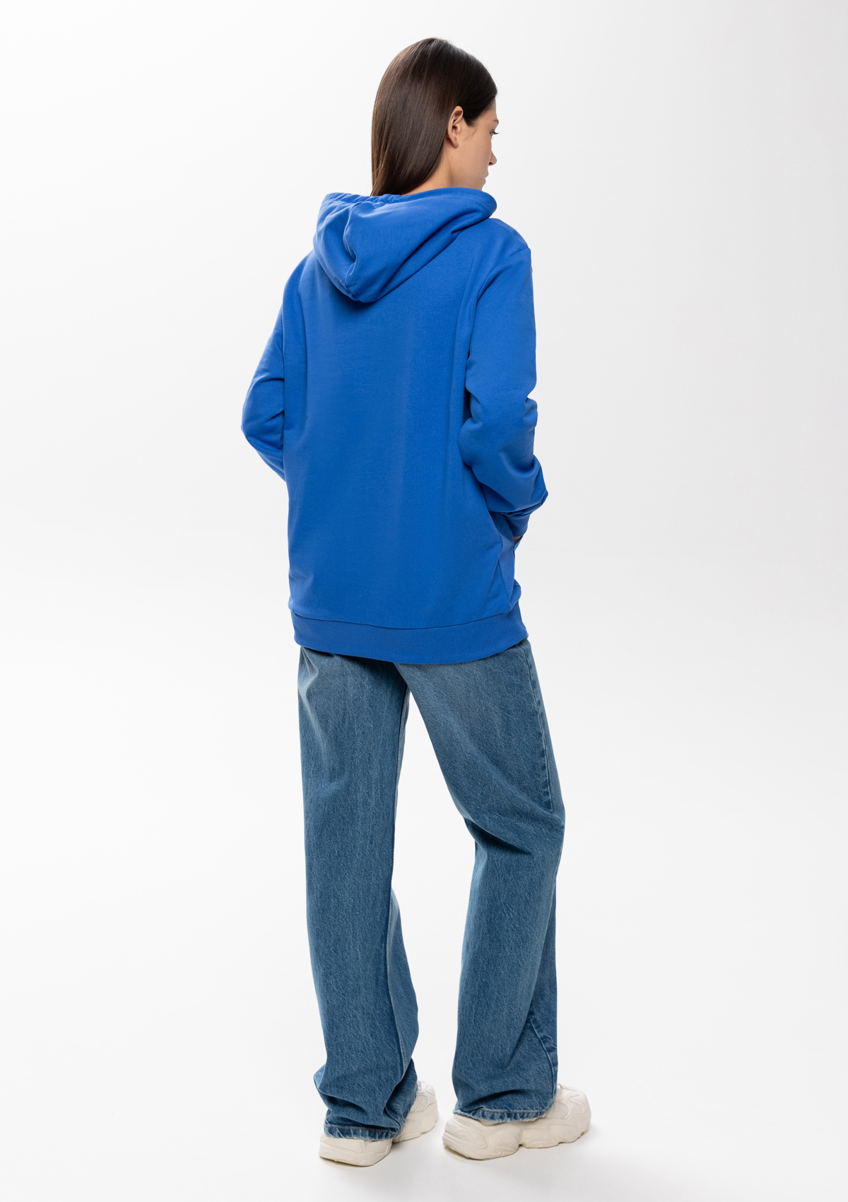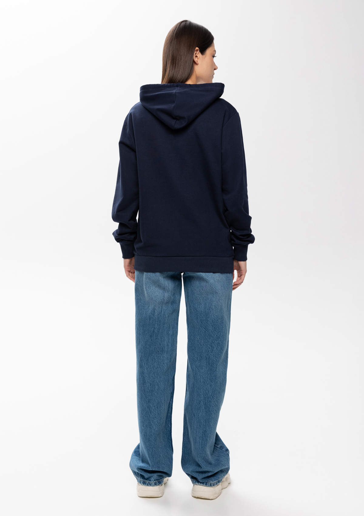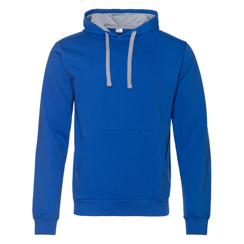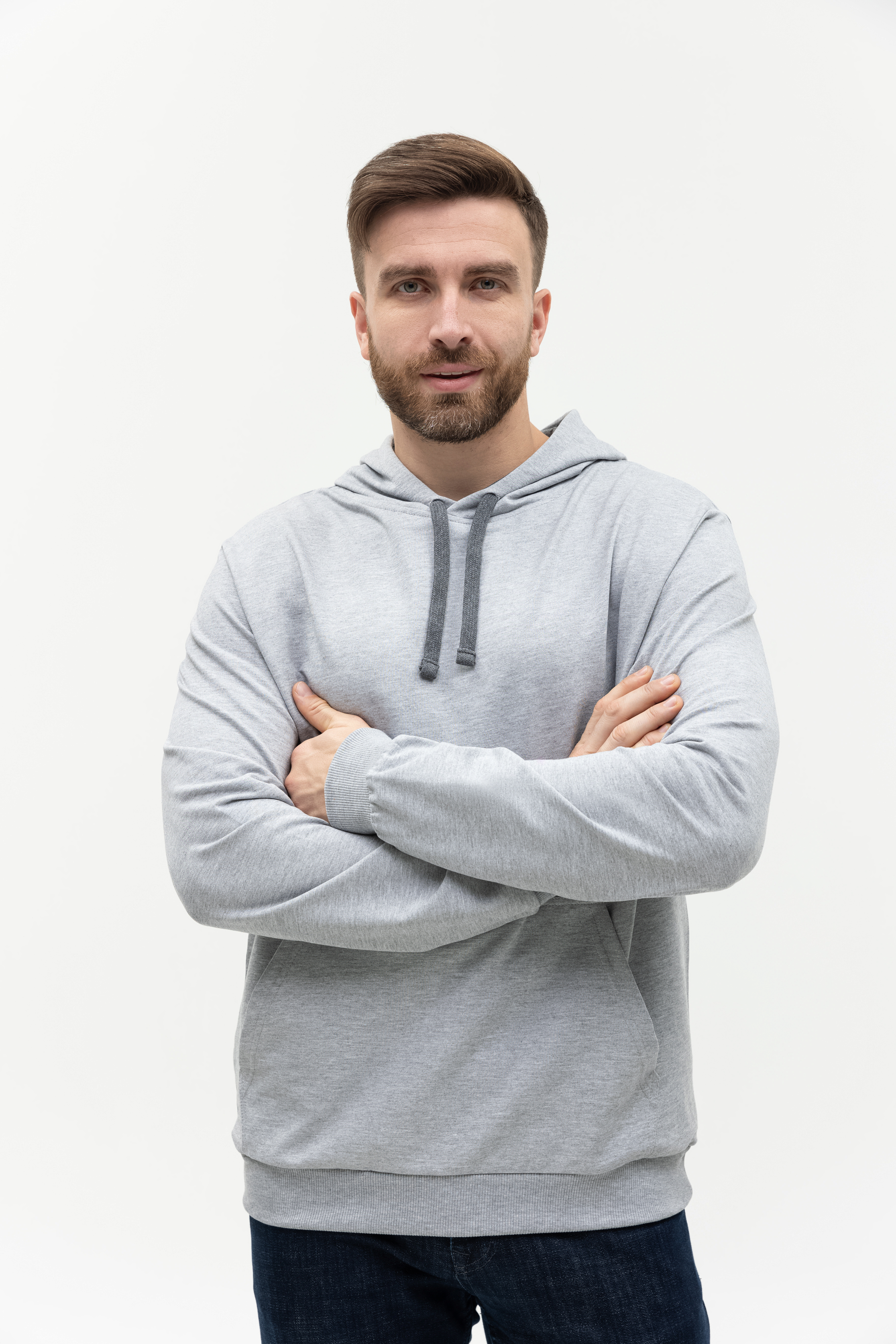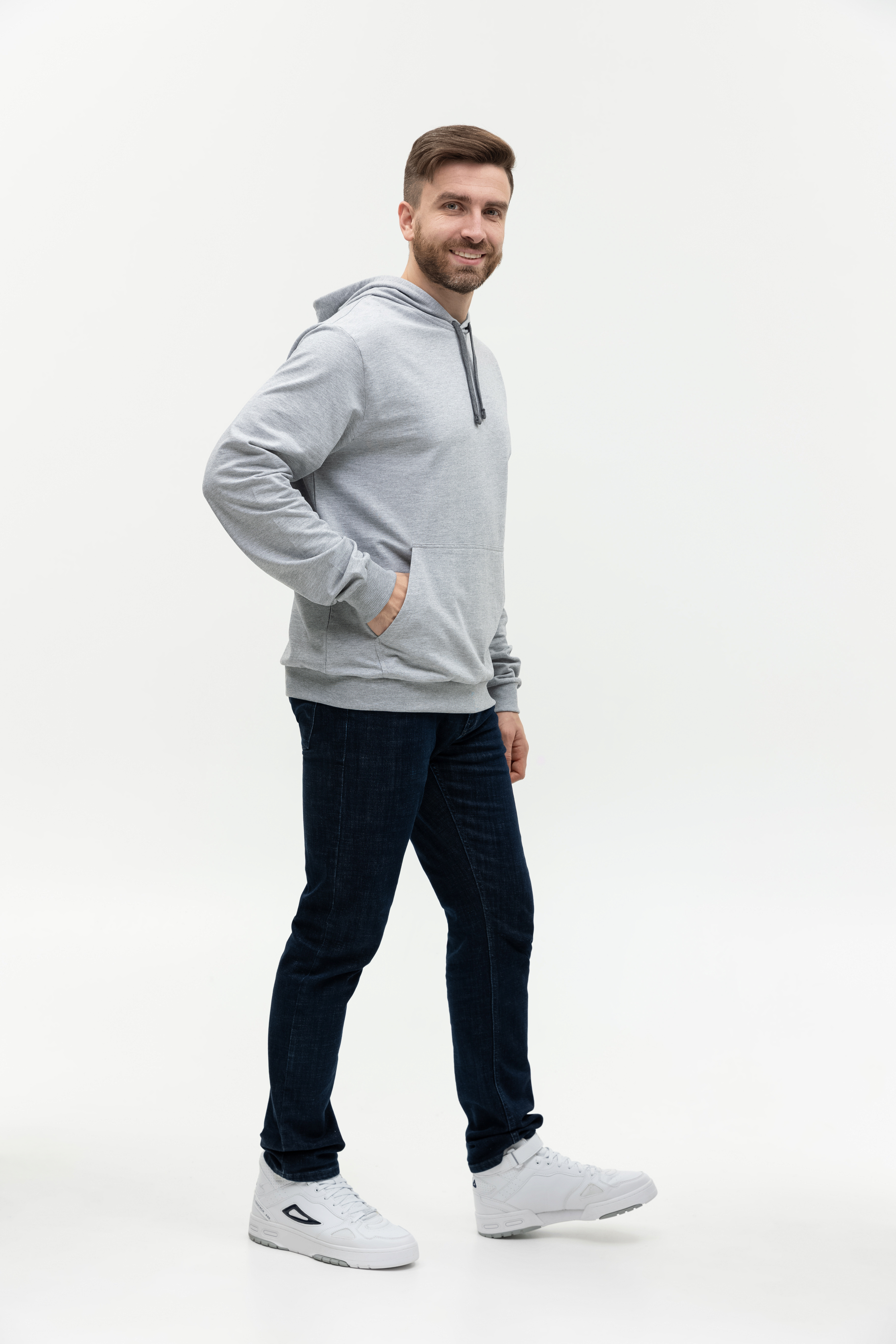 Толстовка без начеса выполнена из мягкого футера (100% хлопок), подклад – кулирная гладь (100% хлопок). Оба материала устойчивы к механическому воздействию и вытяжению, практически не поддаются пилингу.