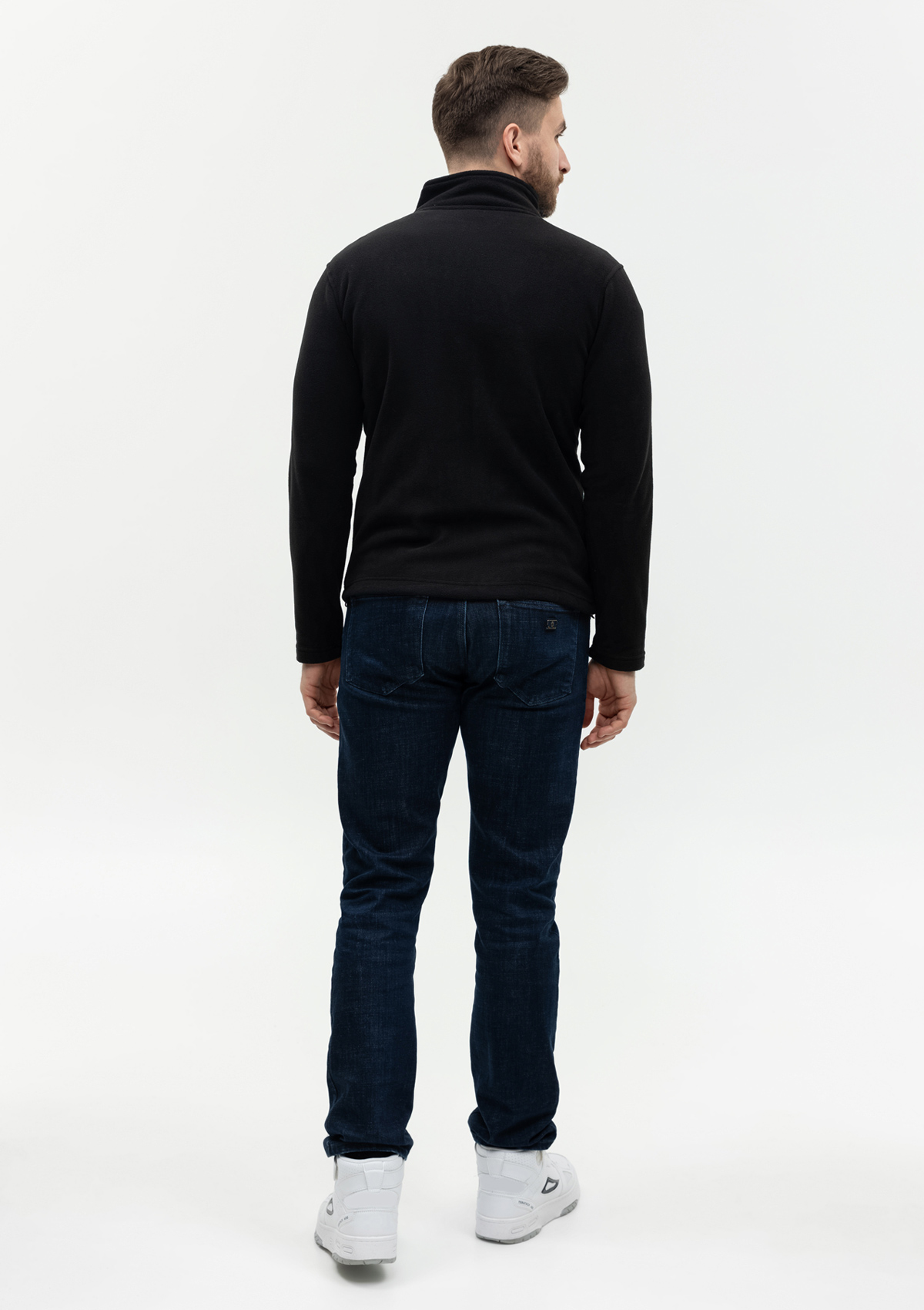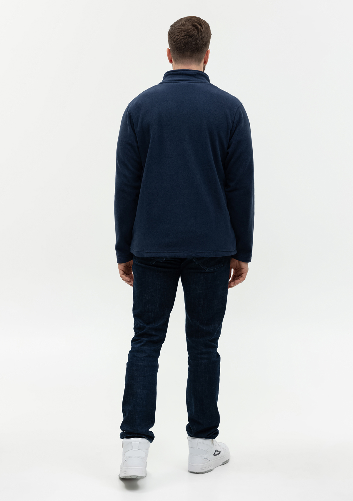 Толстовка прямого силуэта с высоким воротником-стойкой, втачным рукавом, прорезным карманом и застежкой на молнию. Крой дополнен функциональными элементами: внутренний накладной карман и кулиса по линии низа изделия.