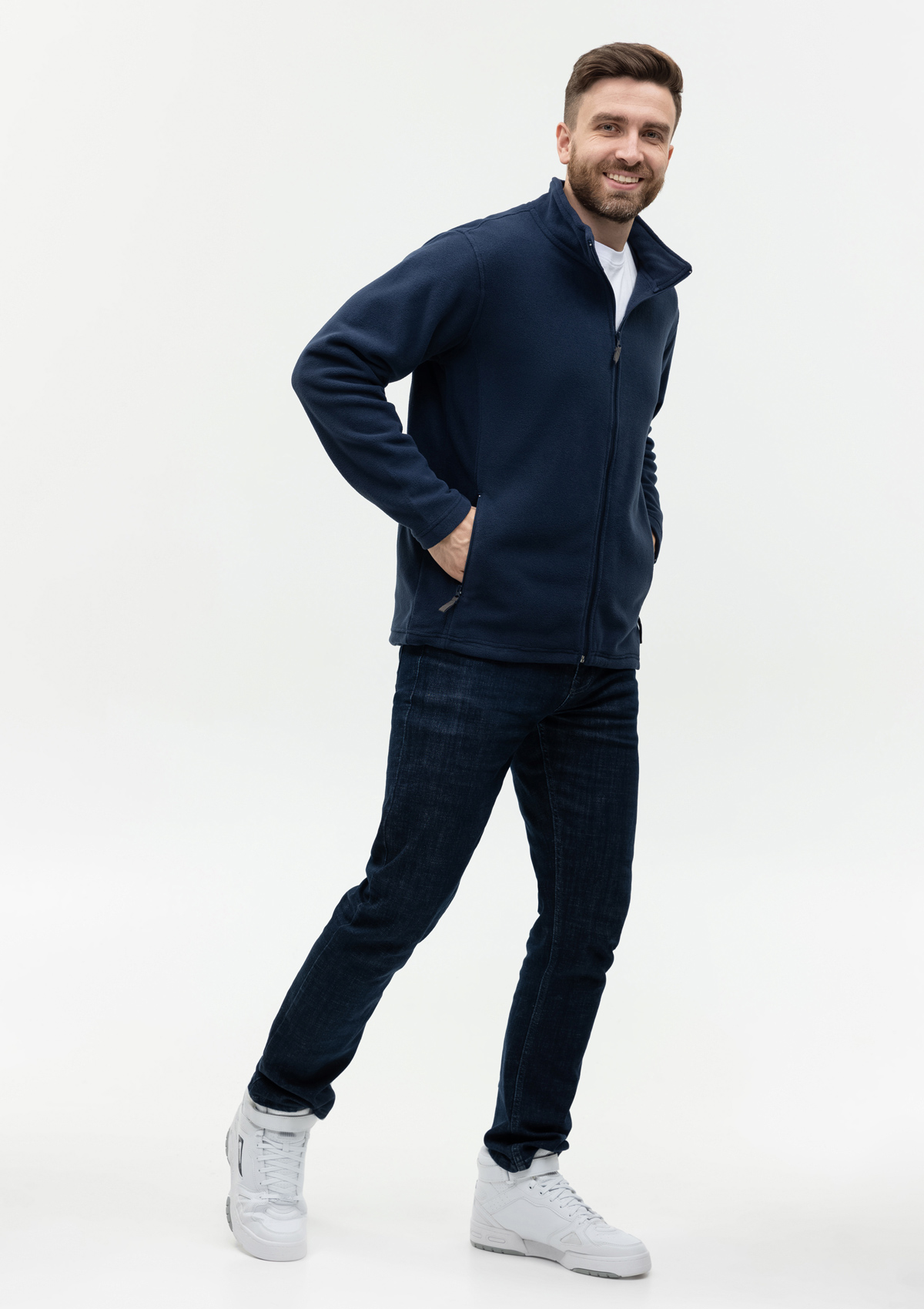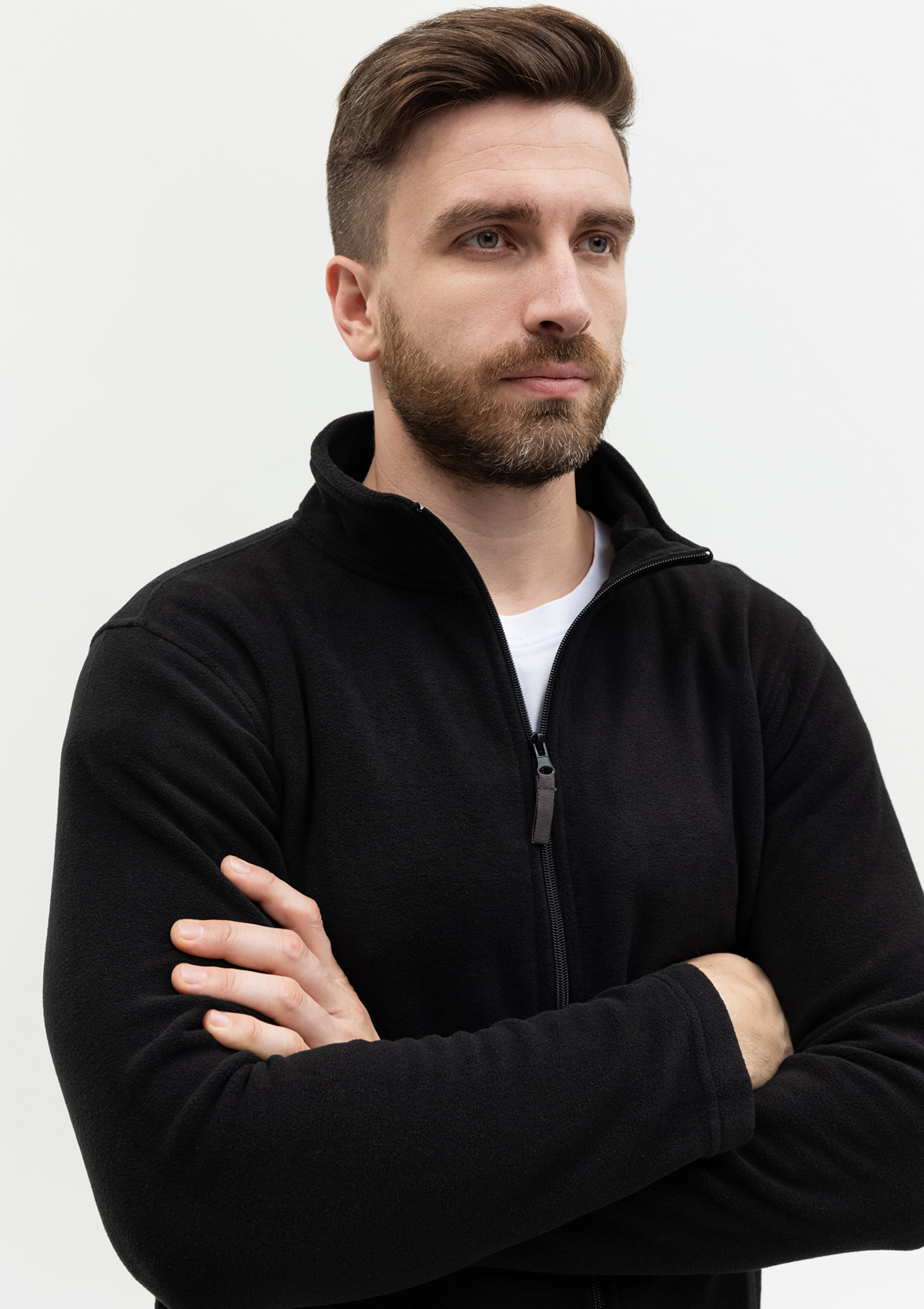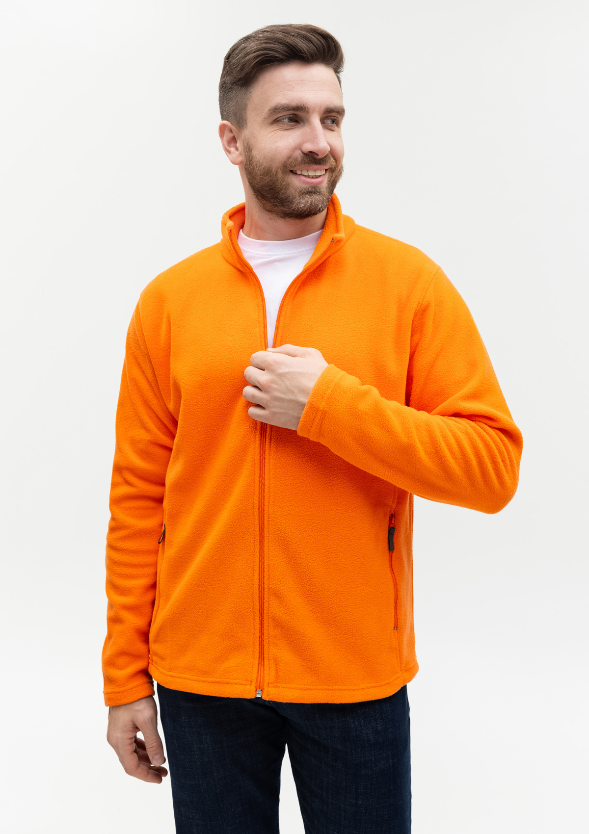 Толстовка выполнена из мягкого микрофлиса плотностью 200гр/м2. Легкий в уходе материал отлично сохраняет тепло, поглощает и отводит влагу.